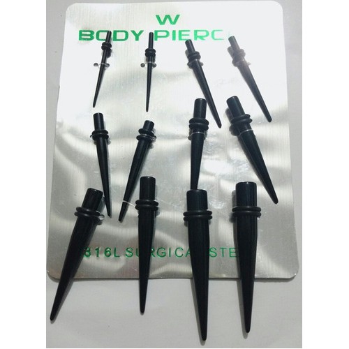 Kit 12 Alargador Pino Preto Par 2mm 3mm 4mm 5mm 6mm 8mm