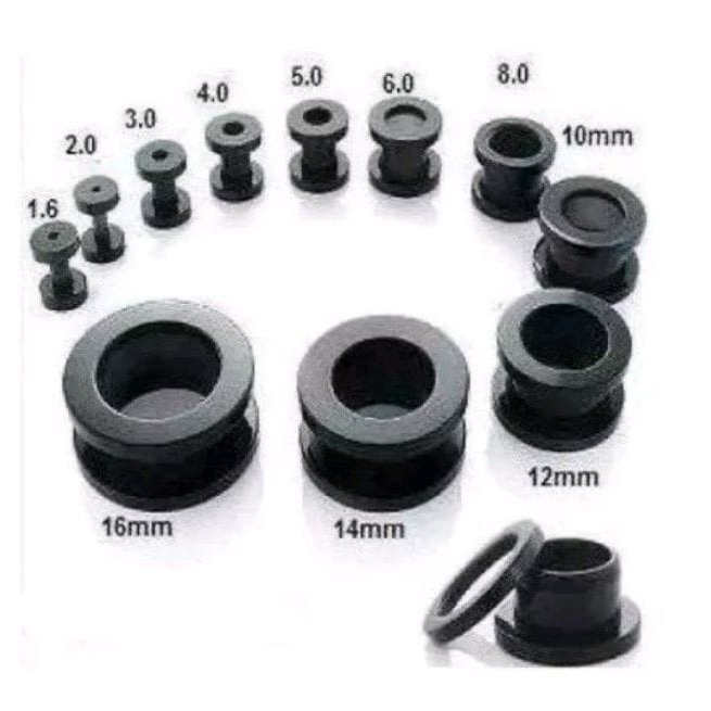 Alargador Aço Cirúrgico PRETO e PRATA 1mm/2mm/3mm/4mm/5mm/6mm/7mm/8mm/10mm/12mm/14mm/16mm