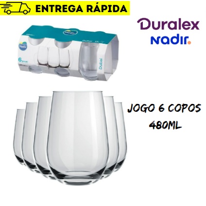 Jogo Kit De Copos De Vidro Com 6 peças 480ml - Dubai Nadir Para Água Drinks Refrigerante