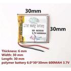 Bateria Com 2 Fios 603030 3,7v 600mah 6mm X 30mm X 30mm