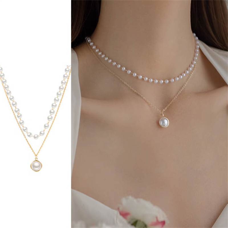 1pcs /set Colar Pingente de Pérola Dupla Colar de Pérola Moda Cadeia de Clavícula com Contas de Ouro Feminino