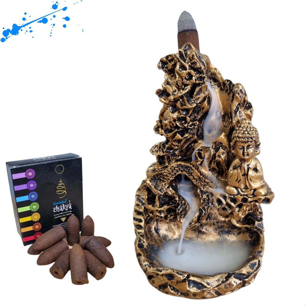 Incensario Cascata Dragão + 10 Incensos BackFlow Goloka