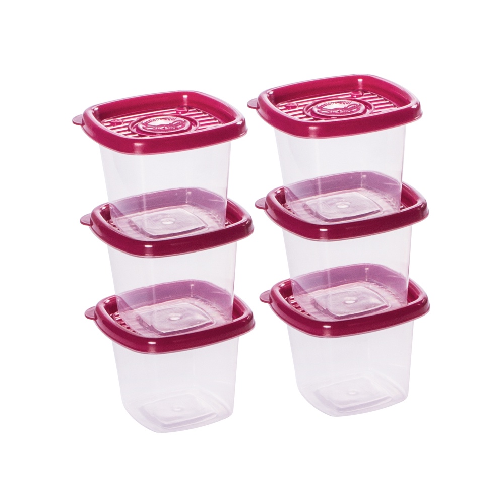 Conjunto 6 Potes de Plástico Com Tampa Pop Quadrado 170 mL Para Alimento Comida
