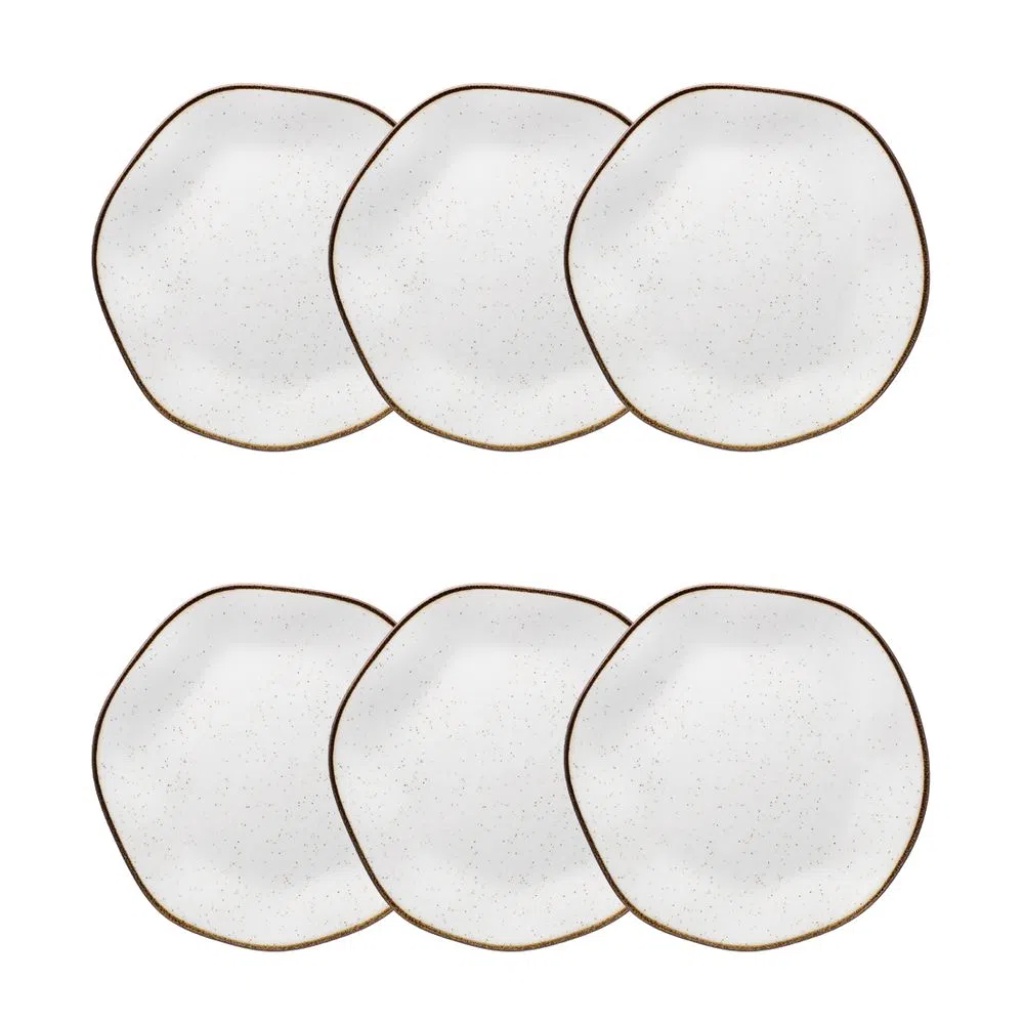 Conjunto 6 Pratos de Sobremesa Ryo Maresia 21,5cm Oxford Porcelanas Areia