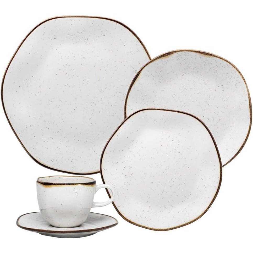 Conjunto de Jantar - Luxo Ryo Maresia 40 Peças Oxford Porcelanas, Pratos Areia