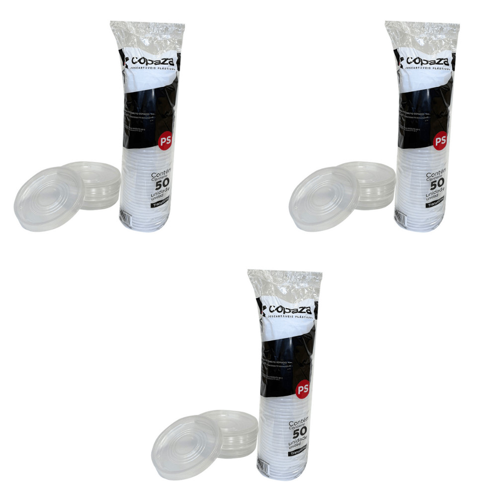 Kit 3 Pacotes de Tampa Translúcida para Copo 150/180/200/250 e pote gomado 110ml Copaza com 50 unidades