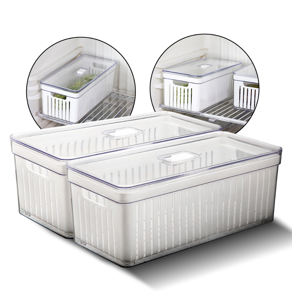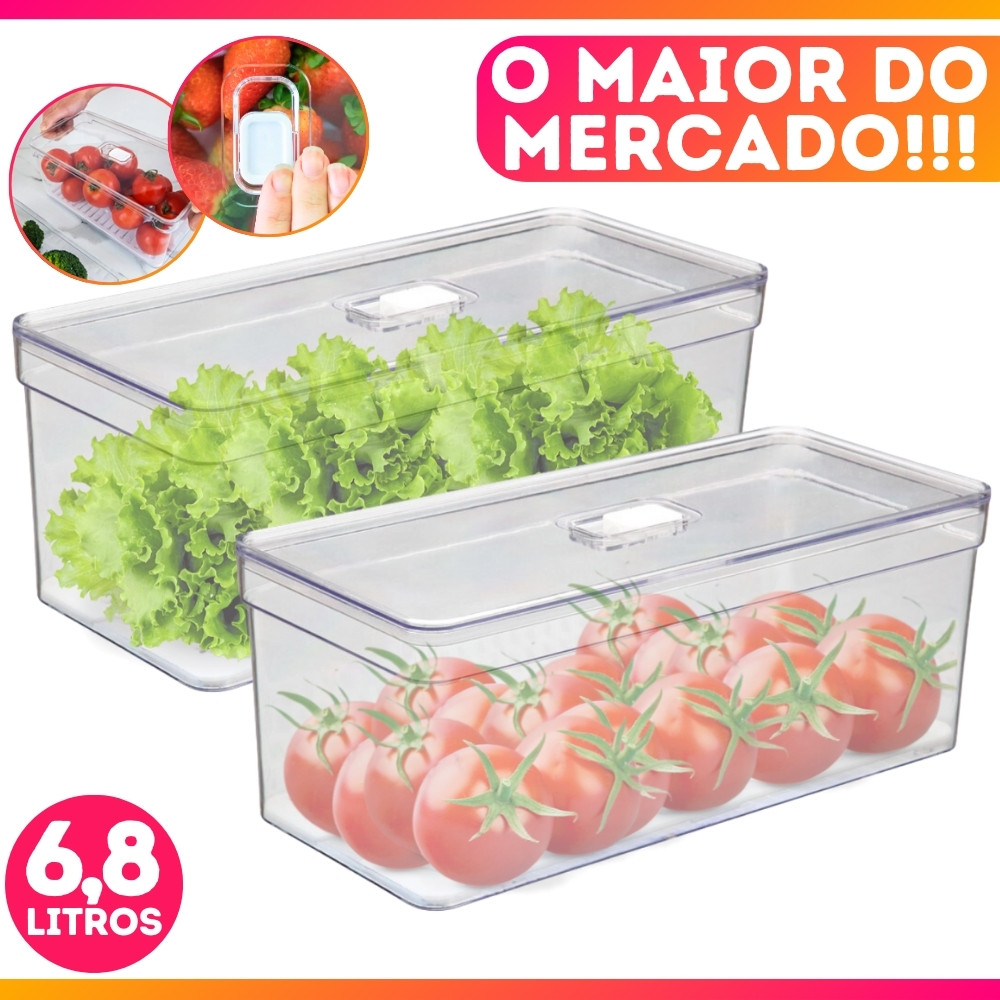 Kit 2 Organizador de Geladeira 6,8L Com Tampa Multiuso Bandeja Drenagem Alimentos Verduras Vegetais