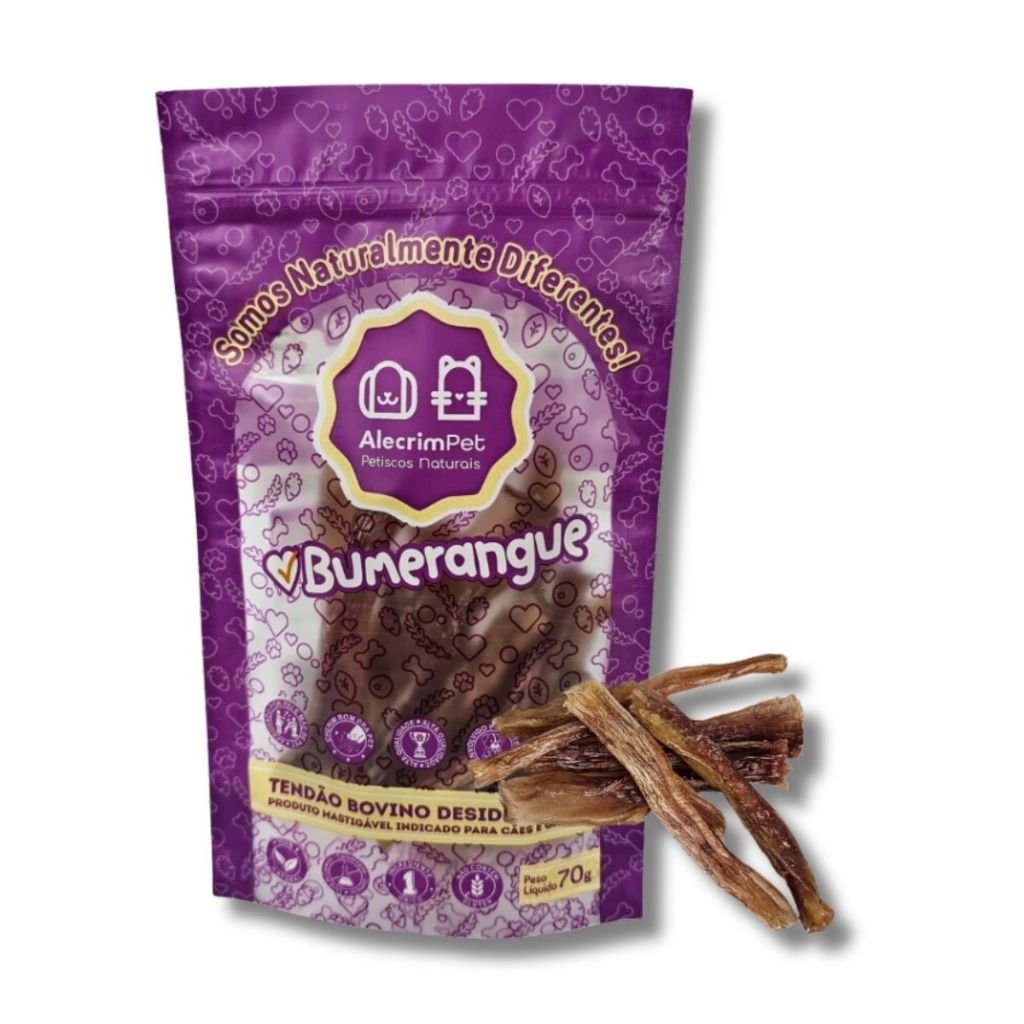 Tendão Bovino Mordedor 100% Natural Para Cães Bumerangue 60g AlecrimPet