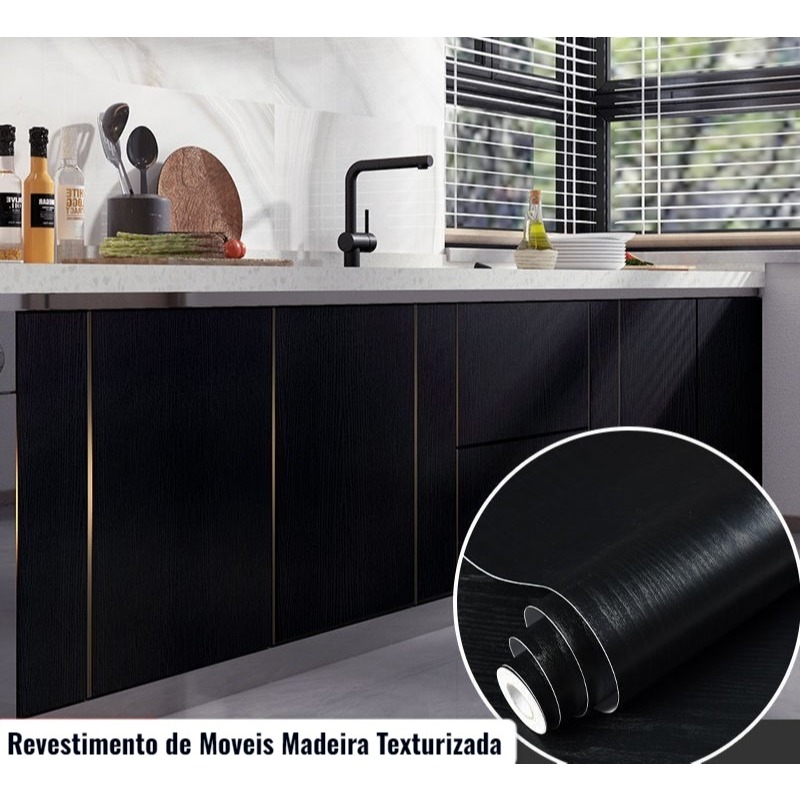 Papel de Parede Adesivo 2 a 6 Metros Para Cozinha, Envelopamento Adesivo Preto ou Branco
