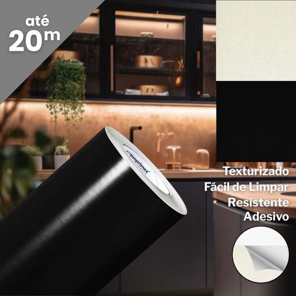 Papel de Parede Rolo Até 20 Metros Adesivo Contact PVC Preto ou Branco Off White Texturizado envelopamento