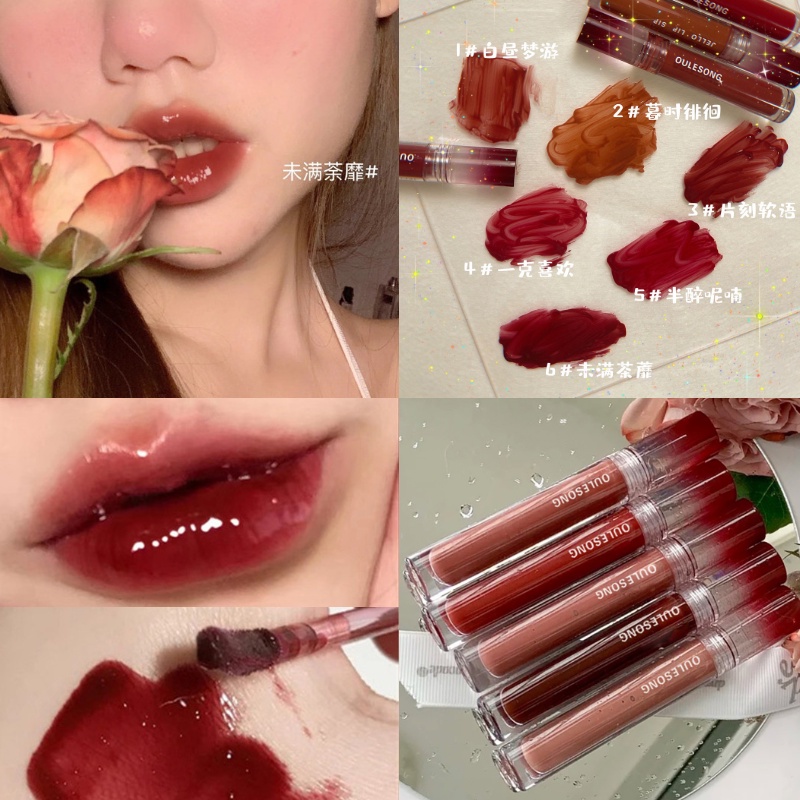 OULESONG 6 Cores De Vidro Transparente Espelho Brilho Labial De Água Óleo À Prova D'água Batom Líquido Não Marcante Duradouro