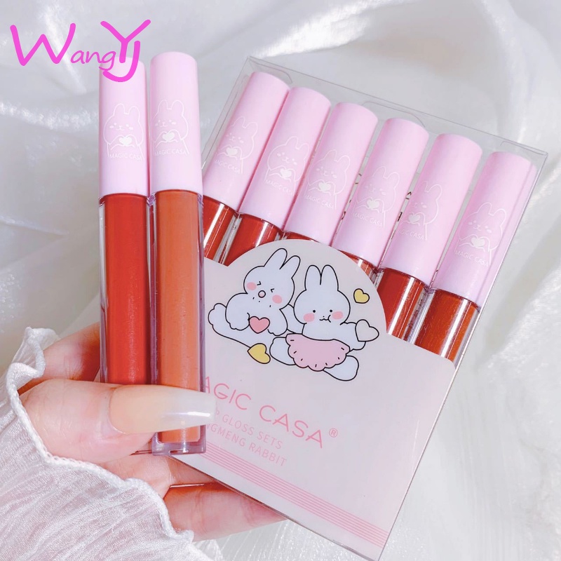 MAGIC CASA 6 Pcs Harelip Glaze Set Batom Fosco Antiaderente Copo Lábio Lama A Prova D'água Brilho Labial