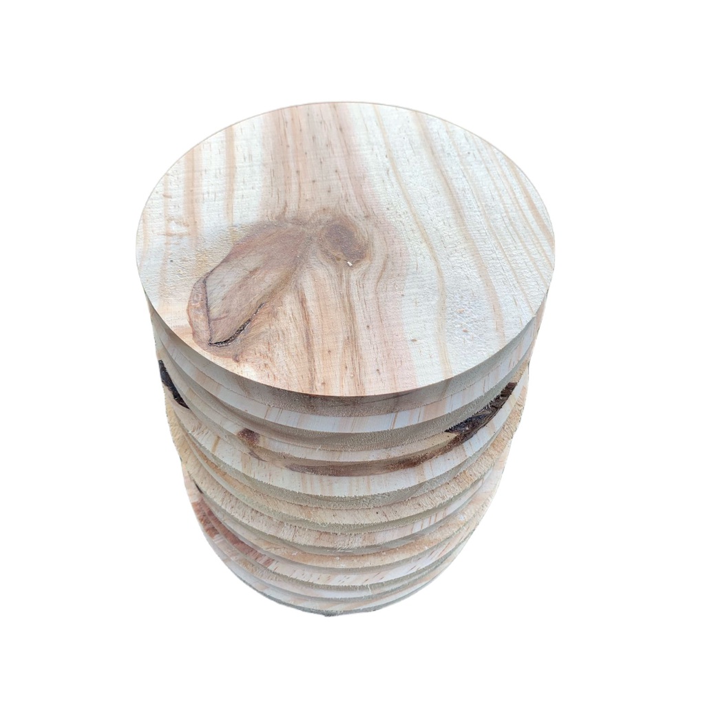 Placa Tábua Redonda de Madeira Pinus 14cm - Segunda Linha - 10 pçs