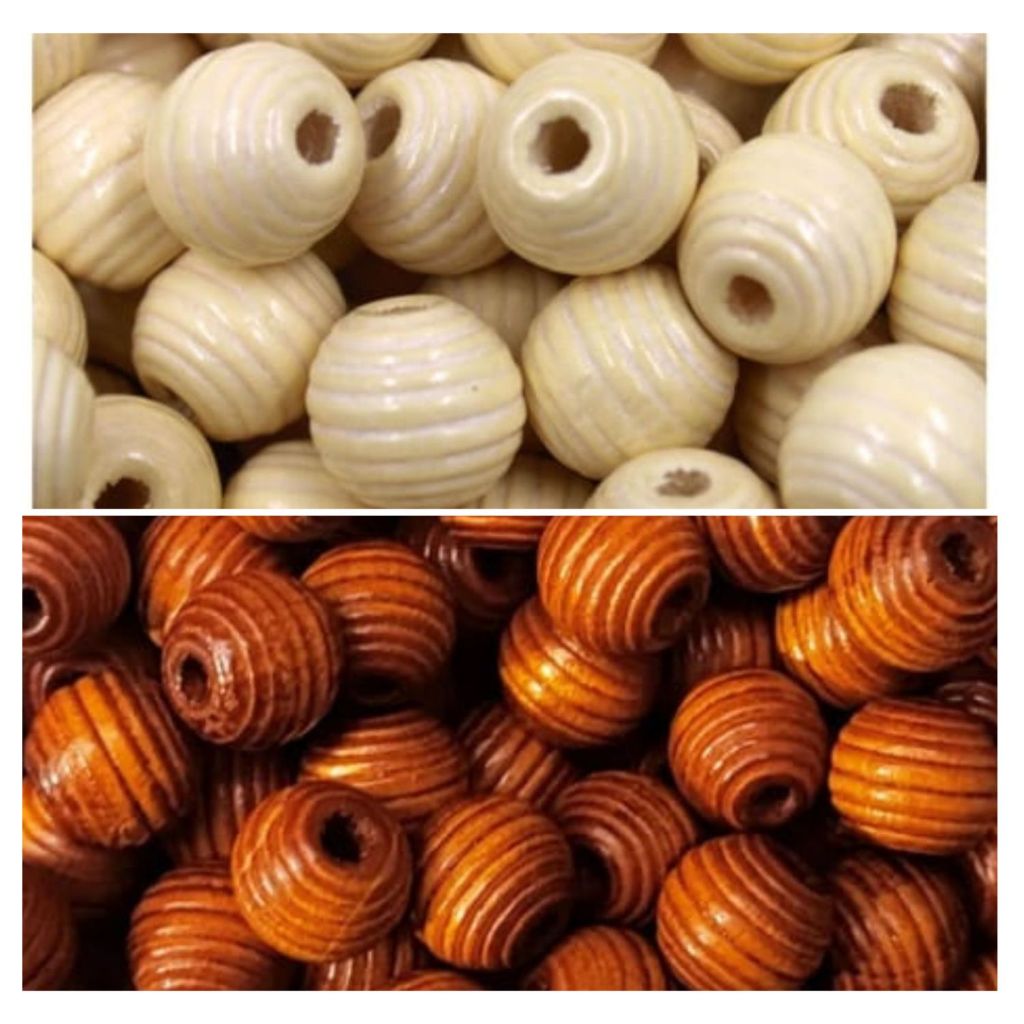100 ou 300 Miçanga Madeira Bola Frisada 12mm ou 14mm Passante Artesanato
