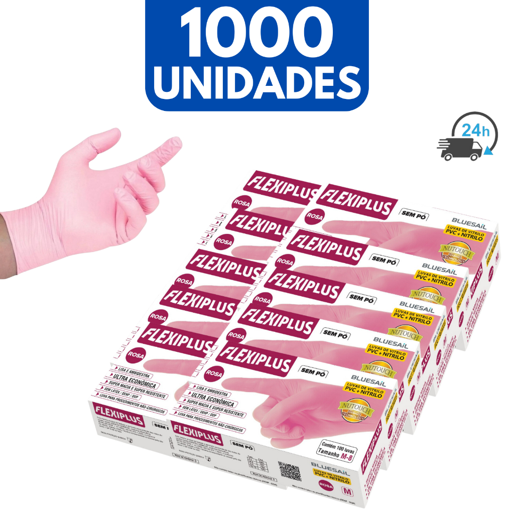 Luva Descartável Nitrilica Rosa Pink Kit 10 Caixas Nitrilo De Procedimento