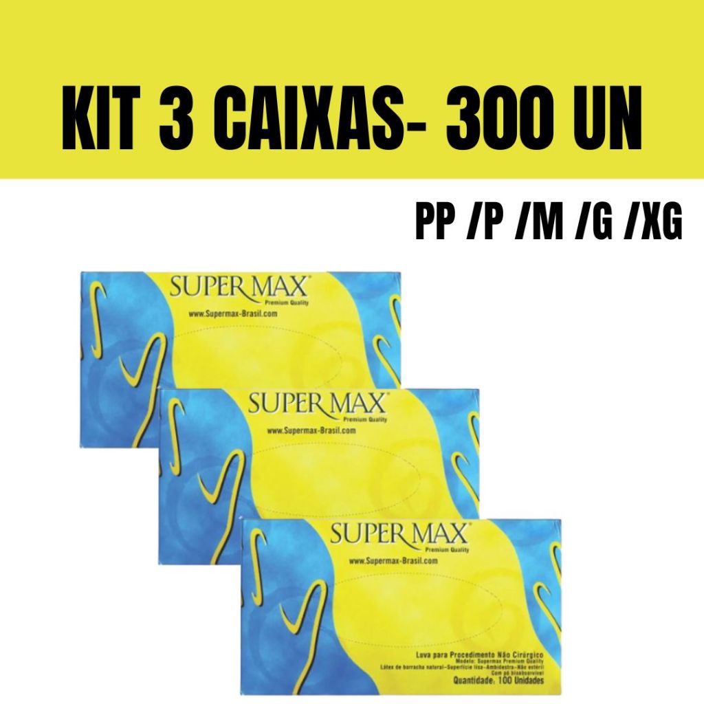 Kit 3 caixas Luva Látex Descartável Branco Proteção Estéril De Borracha Natural Para Procedimentos Não Cirúrgicos 100 Un - Supermax