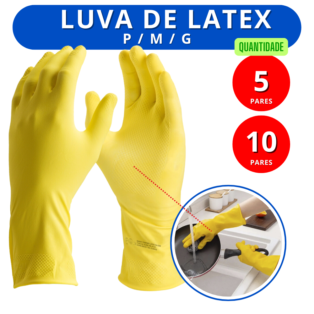 KIT Luva de Latex Para limpeza - P/M/G - 5 pares ou 10 pares