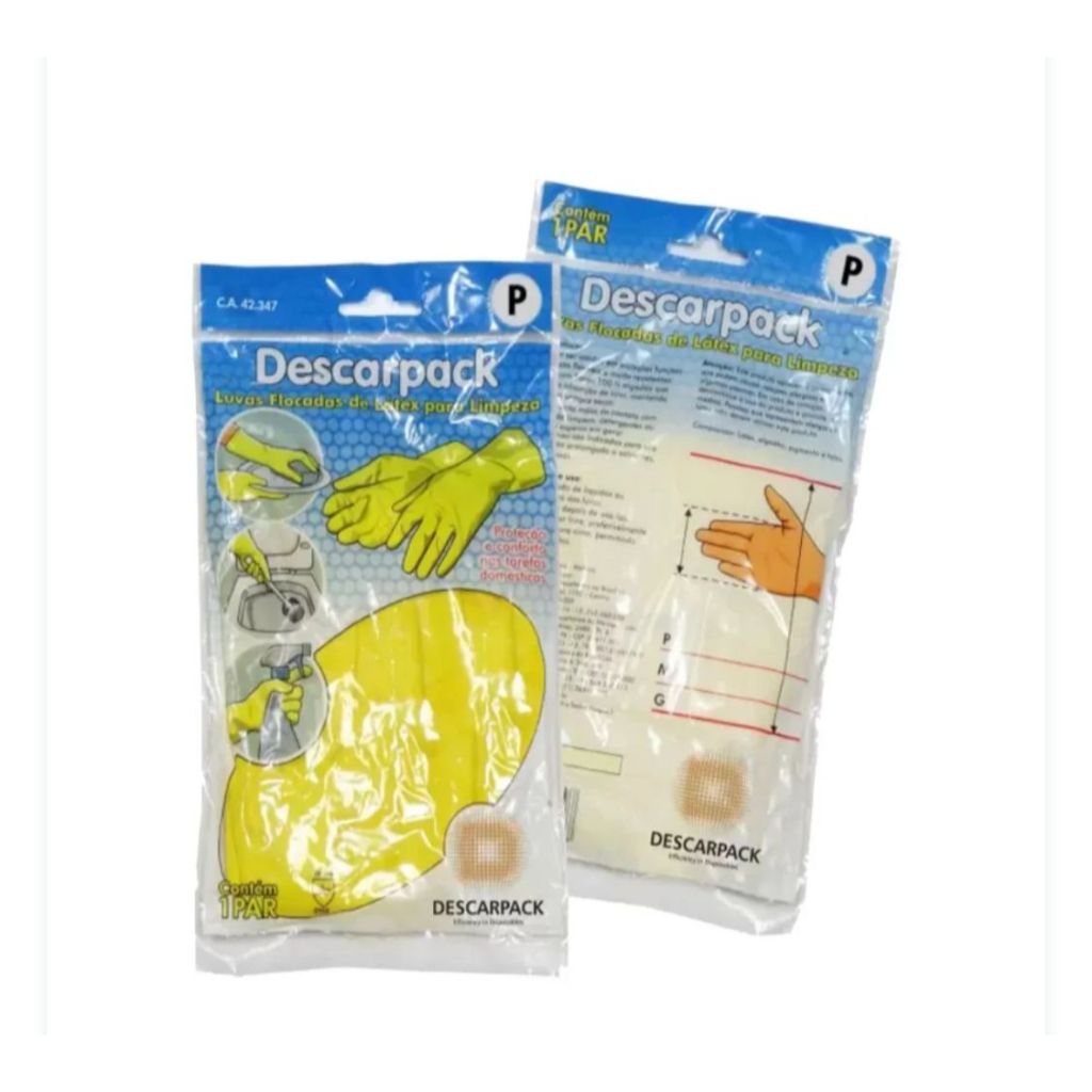 LUVA DESCARPACK DE LATEX PARA LIMPEZA AMARELA KIT COM 10 PARES - TAMANHO G