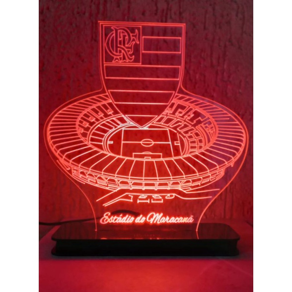 Abajur Luminaria Acrilico Led, Estádio do Flamengo, Maracanã, Personalizado