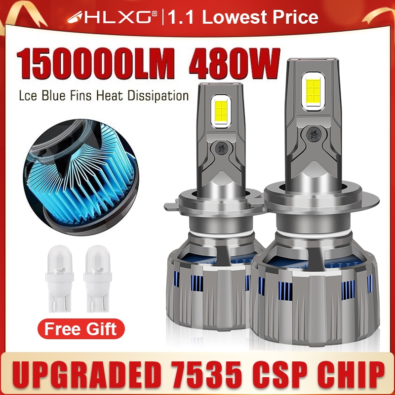 HLXG H7 Canbus LED 150000LM 480W 7535 H11 H4 H1 HB3 9005 HB4 HIR2 H8 Lâmpadas De Teto Para Carro Lâmpada De Nevoeiro Automático PTF STG Motocicleta 6000K 2 Peças