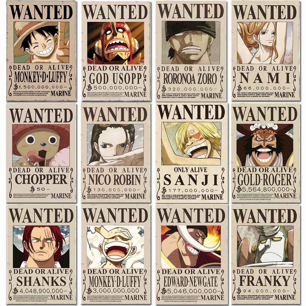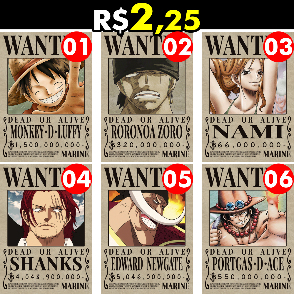 Kit 10 Quadros Decorativos 10x15 One Piece Anime Placas Decorativas Recompensa Wanted One Pice Coleção Exclusiva