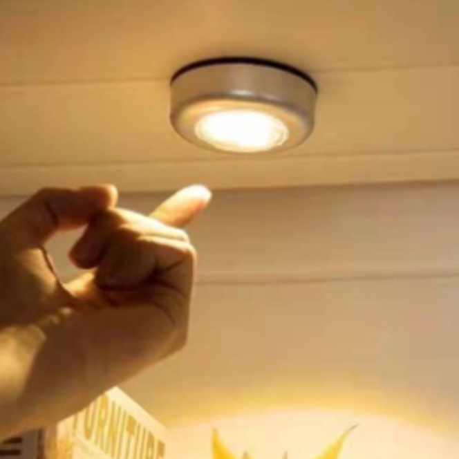 Luminária Mini Iluminária Redonda De Toque Sem Fio Com Spot 3 Led Forte Com Fixação Dupla Face Luz De Parede Para Casa Em Cozinha Banehiro Multiuso