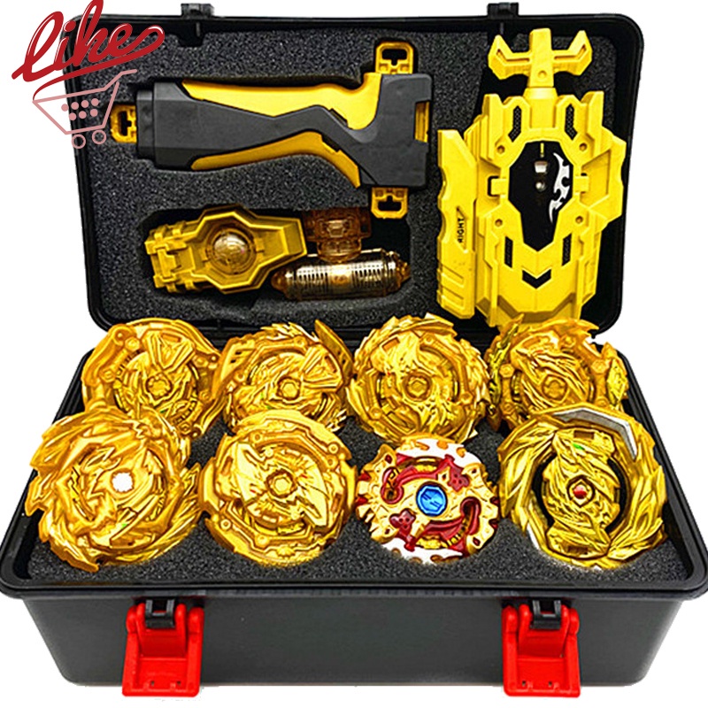 Kit 8pcs Beyblade Burst Gold Spinning Top Toolbox Set Com Lançador Dispositivo De Peso Equilibrador De Alça Brinquedos Para Crianças