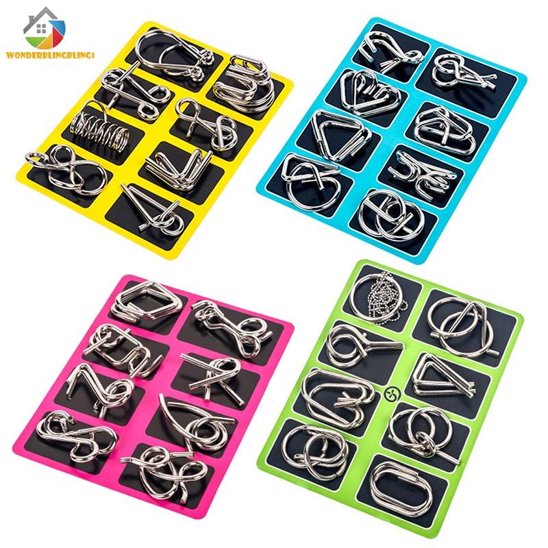 kit 8 Quebra Cabeça Metal 3d Enigma Desafio Steel Puzzle Anti Stress