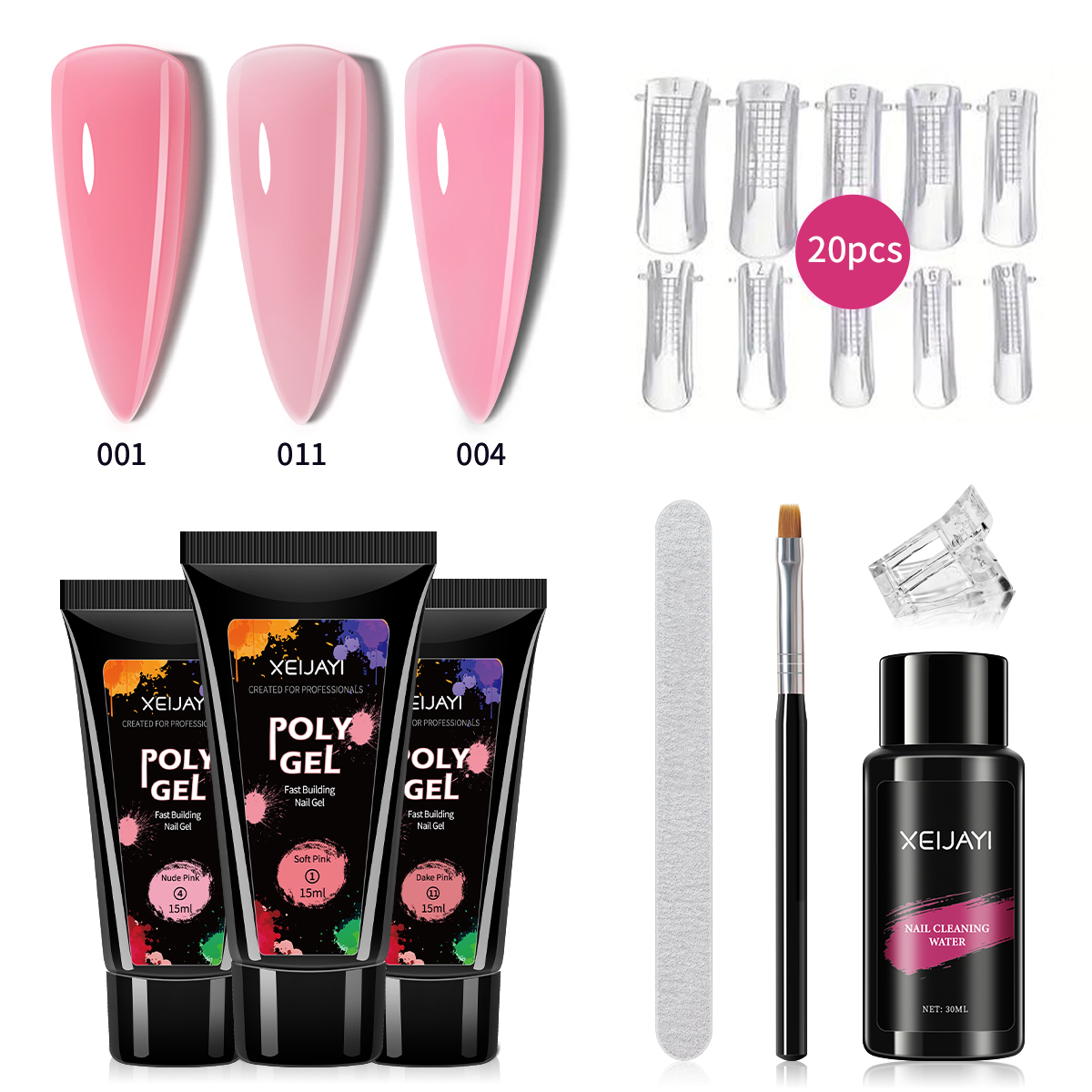 XEIJAIYI 8pcs Kit De Gel De Extensão De Unhas De Polietileno 15ml Nude Pink All In One Construtor Cola Com Formas Duplas Clipes Manicure Set For Beginnerer