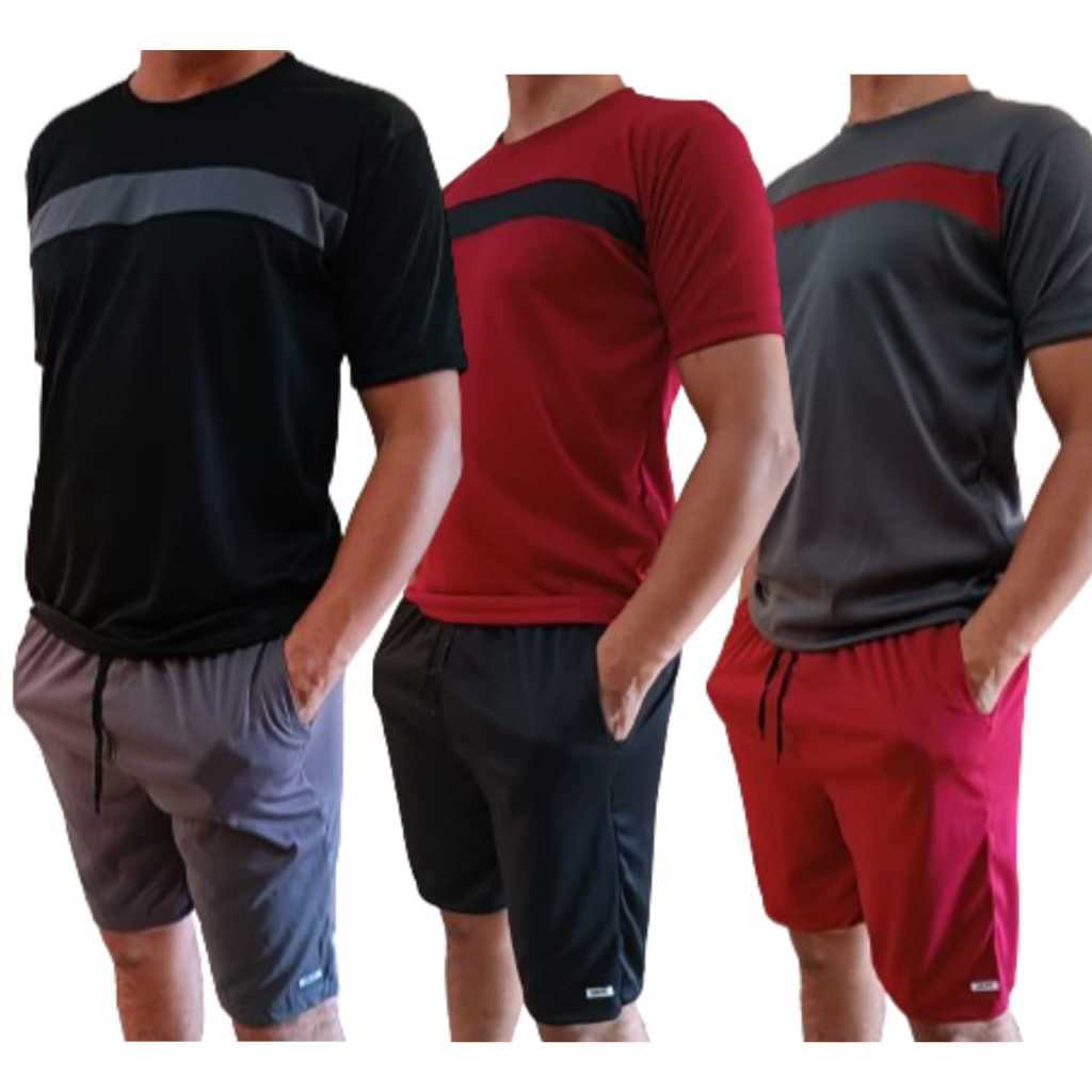 Kit 6 Peças Camiseta+Bermuda/Short Masculino Helanca Dry fit - Lisa- Treino- Esportes- Dia a Dia