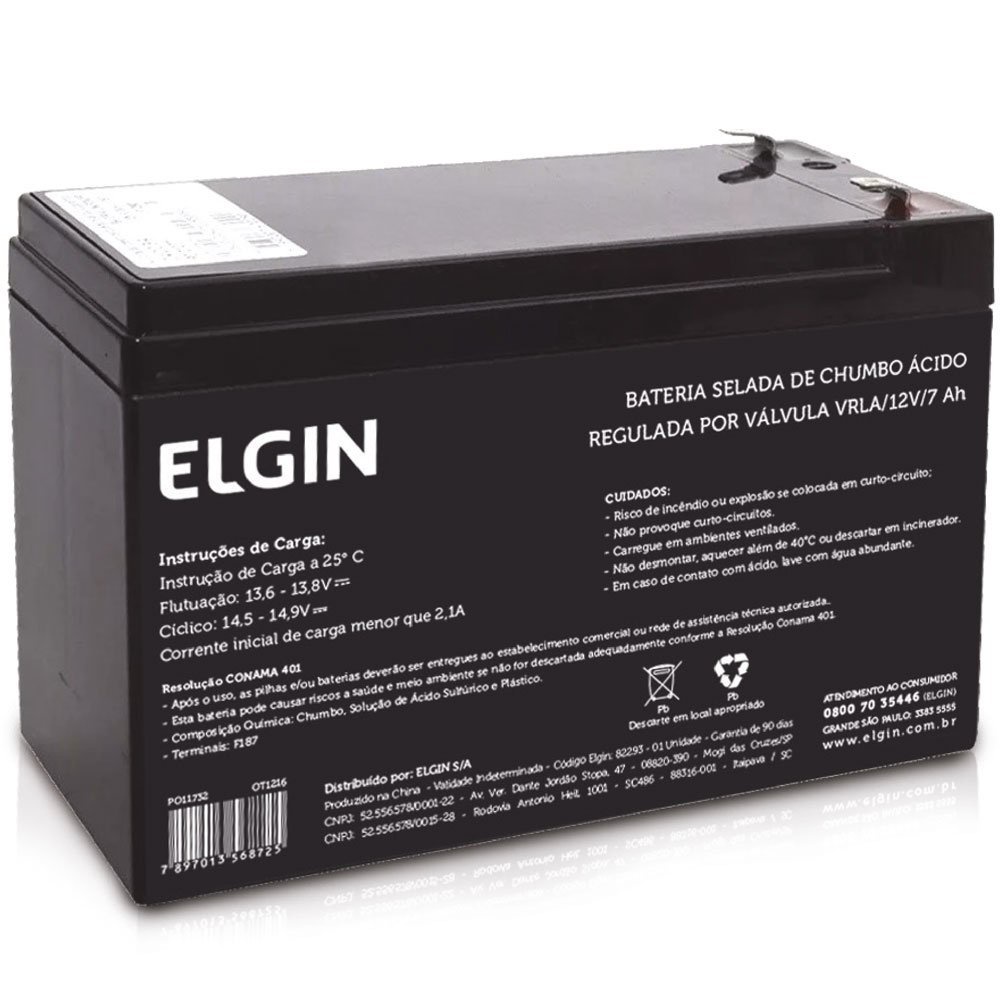 Bateria Selada 12v 7ah (REAL) Elgin - Para uso em Nobreak