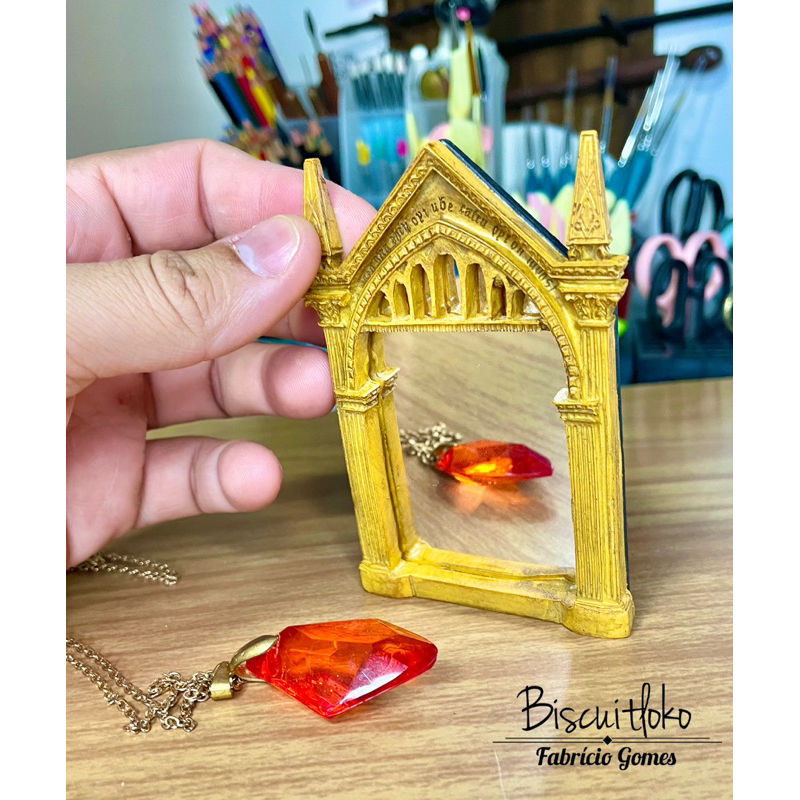 miniatura espelho de Ojesed e colar pedra filosofal harry potter