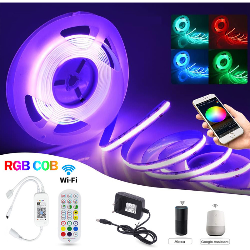 10m 5m WiFi Fita LED RGB COB Dimmable Kit De Flexível & Cuttable Lâmpada Com Controle Remoto Fonte De Alimentação Para Decoração De Quartos De Cozinha De Bricolage