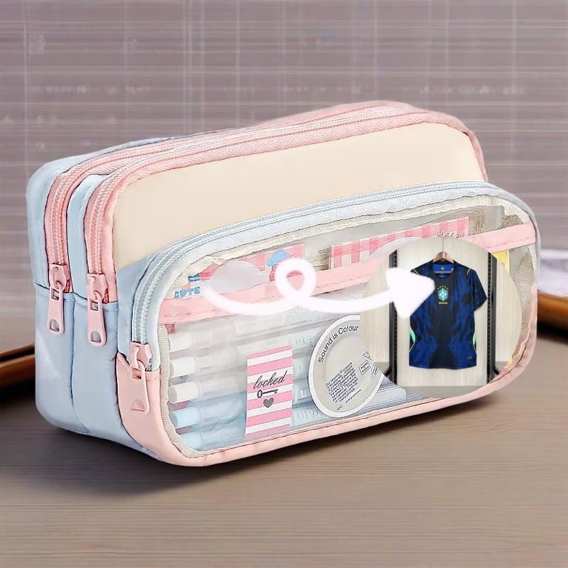 Saco De Lápis Transparente De Três Camadas super Grande Capacidade Morandi Novo Estojo Estudantil