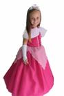 Vestido Princesa Infantil Rosa Roupa Realeza Médio Luxo serve para Festa de Aniversário temático da Aurora e Fantasia de Criança para Carnaval