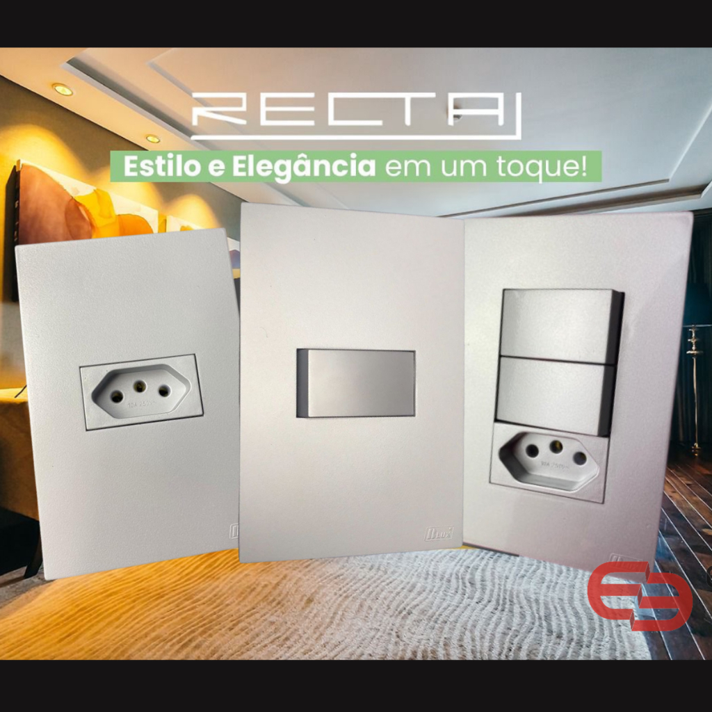Conjunto Tomadas e Interruptores Placa Modulo 4x2 Ou 4X4 Parede Preto Fosco Recta Satin Black tomada 10a ou 20a interruptor paralelo Blux