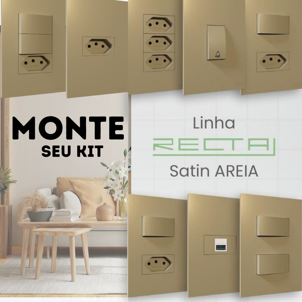 Conjunto Tomada Areia 4x2 10a 20a Interruptor Simples Paralelo Recta Areia Satin Fosco BLUX