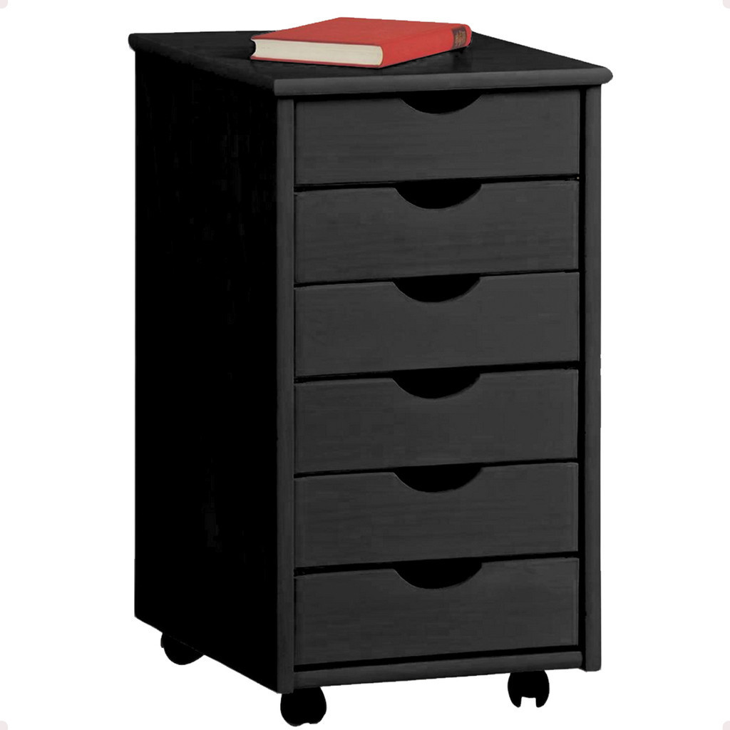 Gaveteiro Organizador Escritório Reforçado 6 Gavetas Preto Madeira Maciça de Pinus