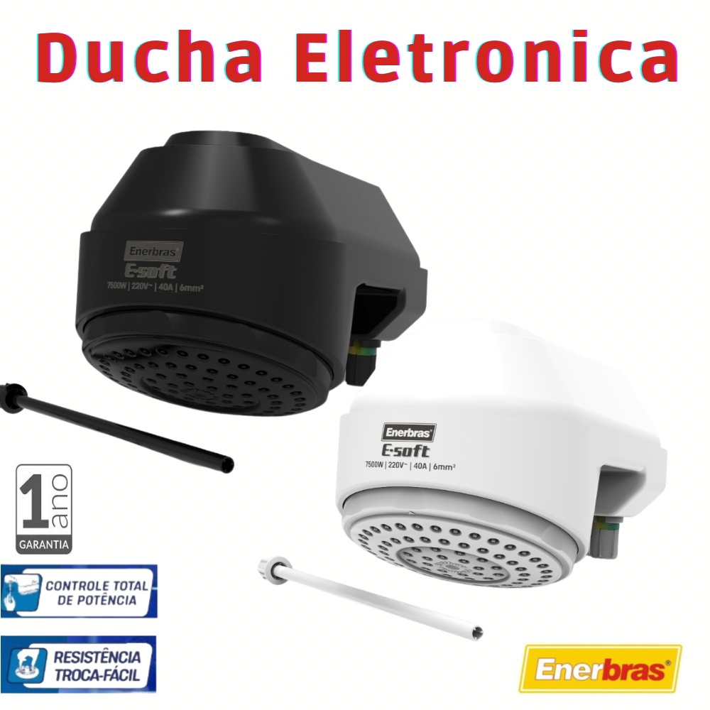 Ducha Enerbanho Eletrica 4T Branca e Cano Branco Chuveiro Eletrico 4 Temperaturas Preto 5500w 127v 6800w 220v Enerbras Grande vazão Promoção
