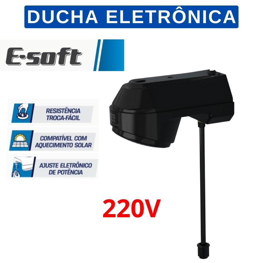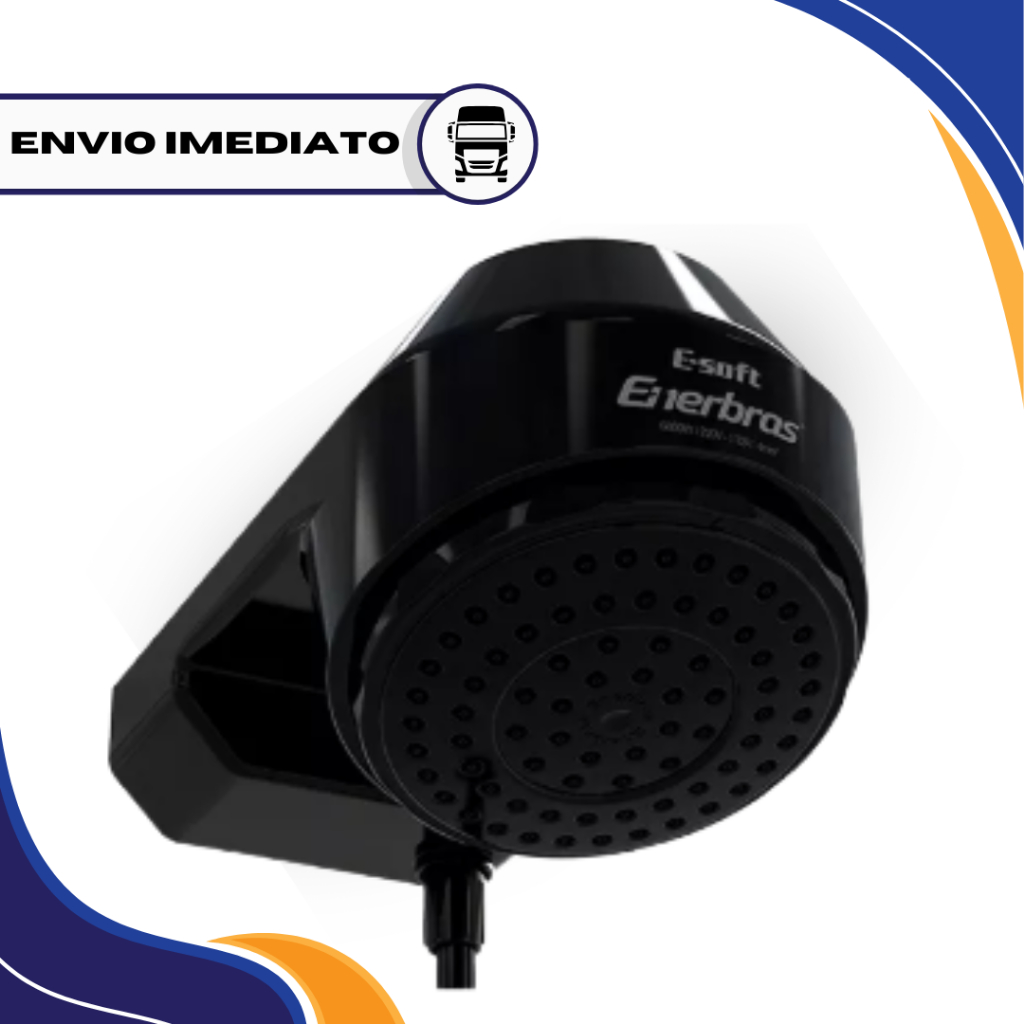 Ducha Eletrônica Preta 220v 6800w ou 7500w E-Soft Chuveiro Preto Enerbras Black Compatível com IDR Jato Inclinado Compatível com energia aquecimento solar