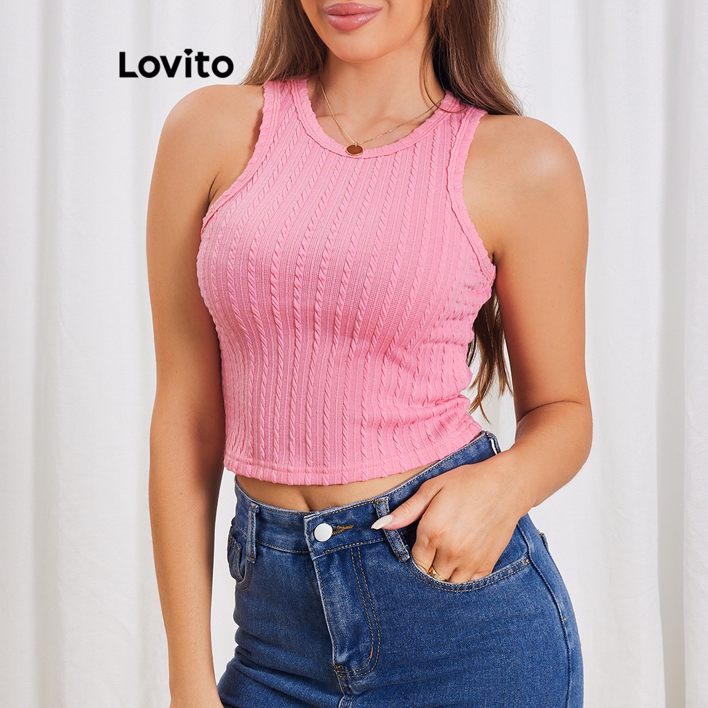 Lovito Regata Básica Casual para Mulheres LBL06157 (Rosa)