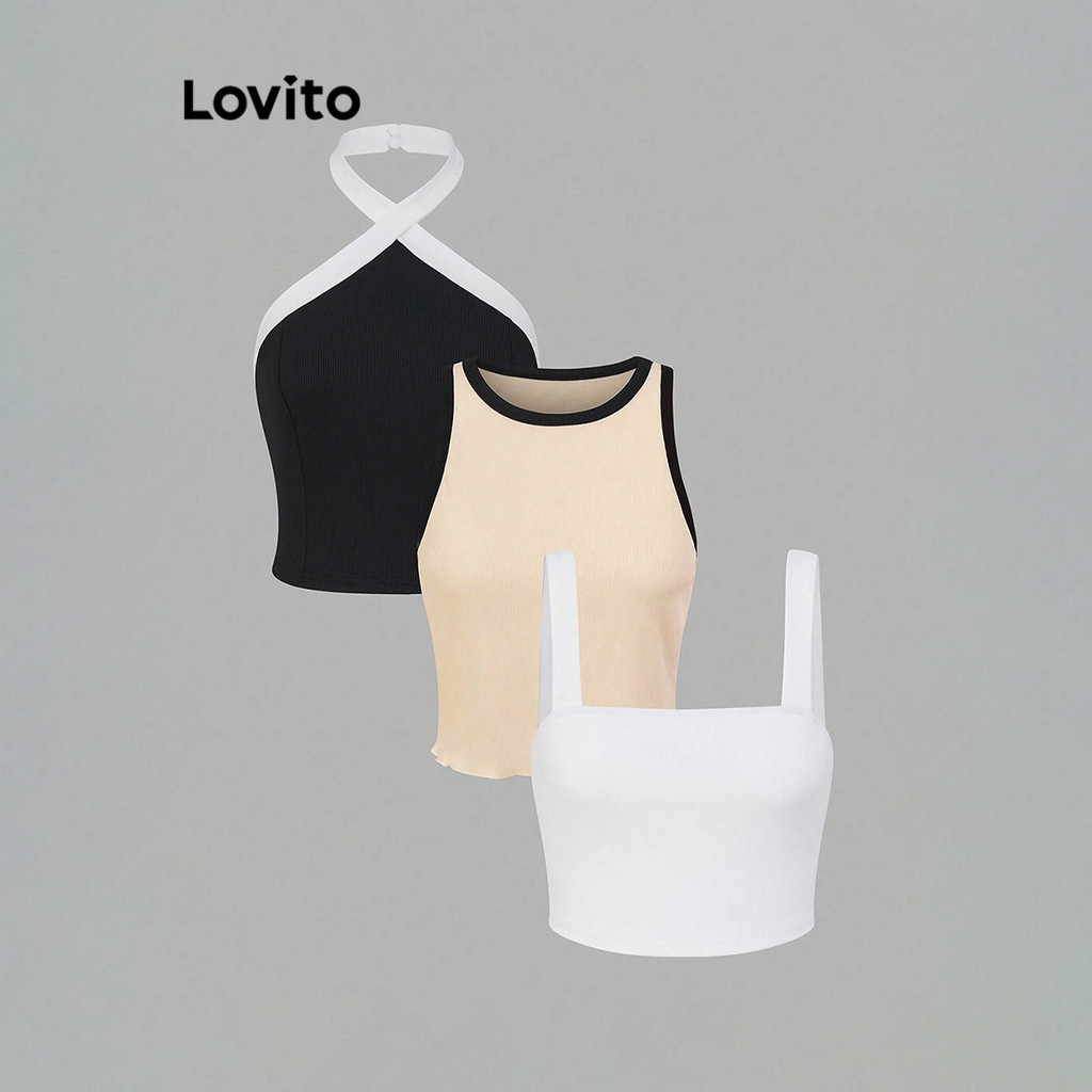 Lovito Regata básica casual colorblock lisa para mulheres L86ED237