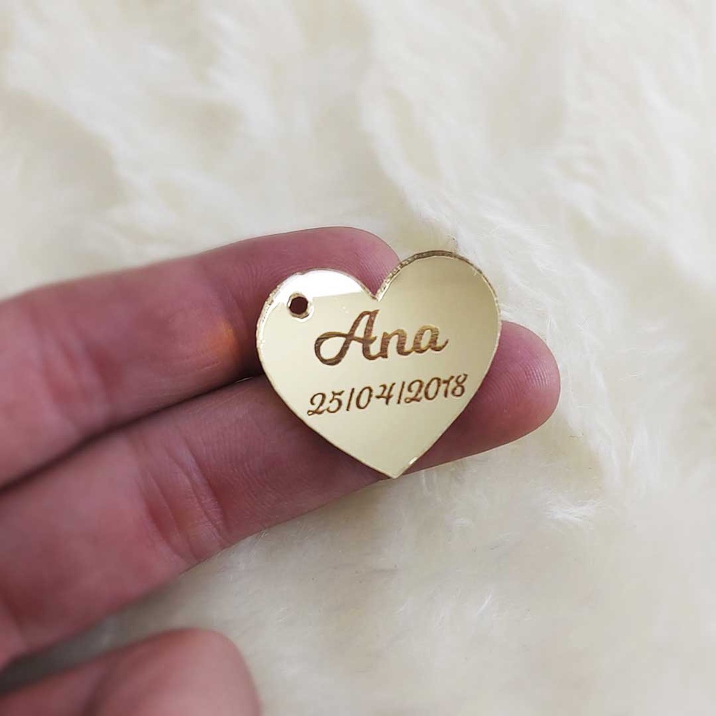 20 Tag Formato coração etiqueta Acrílico Espelhado Dourado Personalizada