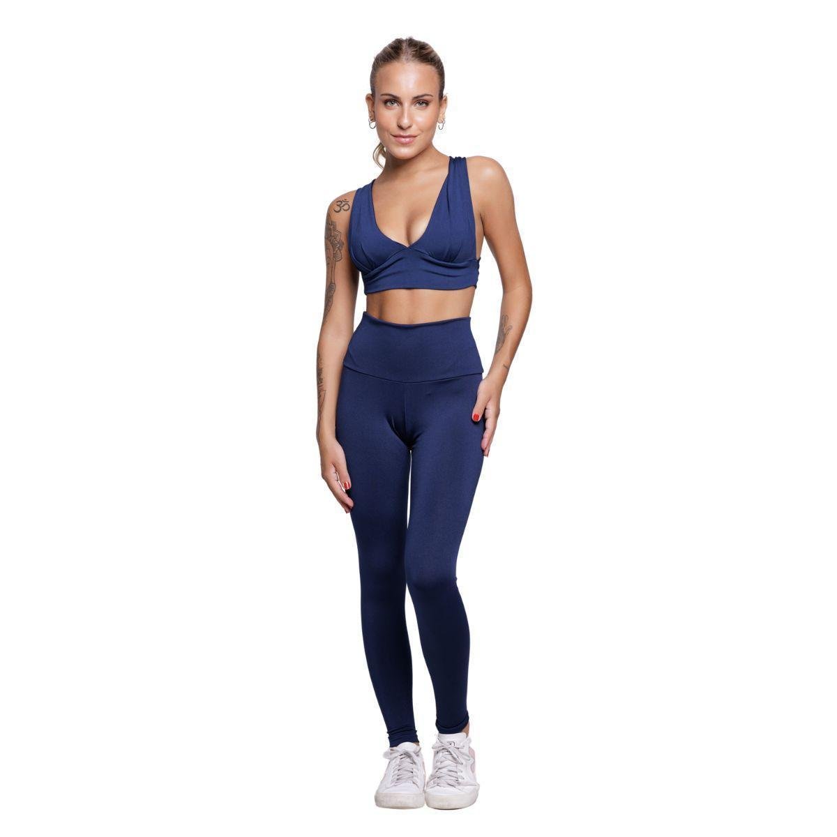Conjunto Top Bojo Costa Cruzada e Calça Suplex Bella Fiore Roupa Para Academia Moda Fitness