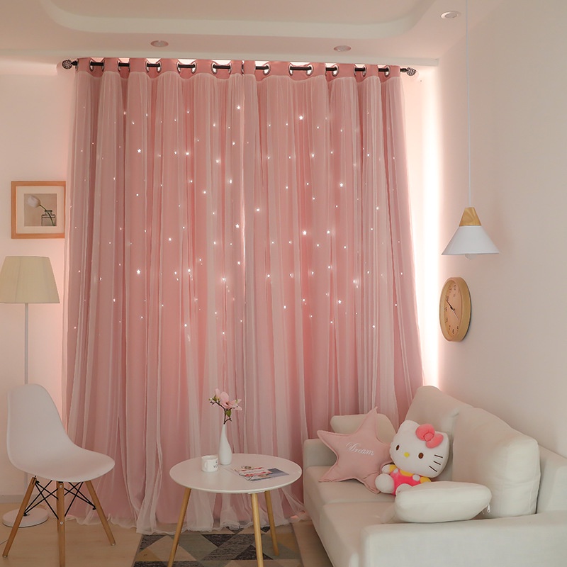 Cortina Dupla Cor-De-Rosa Coreana Para Sala De Estar De Renda Sombra De Quarto Pano De Tule