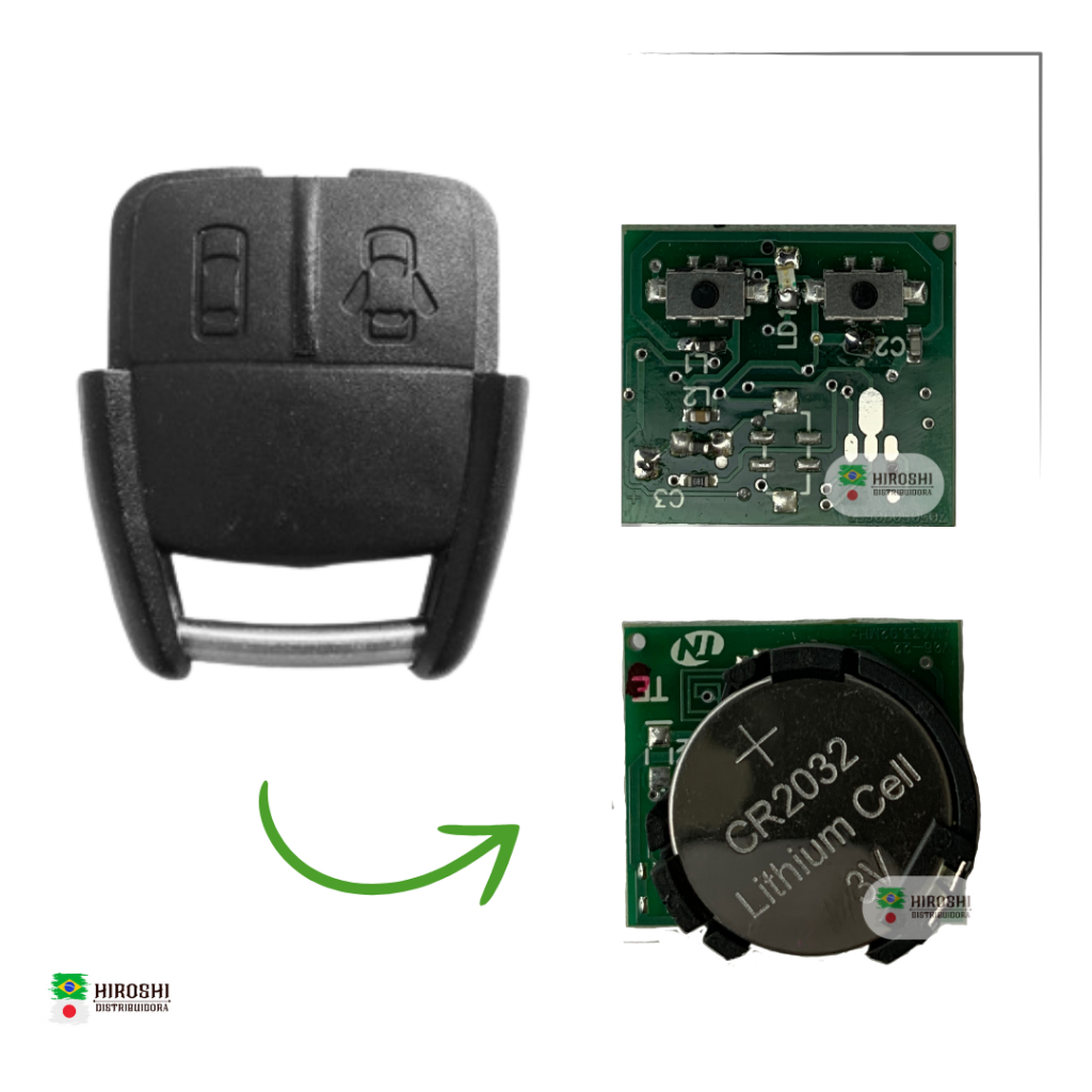 Telecomando GM Astra, Zafira, Montana 2 botões 2002 / 2003 / 2004 / 2005 / 2006 / 2007 / 2008 Com bateria na placa para alarme original - Cód: ORG-037