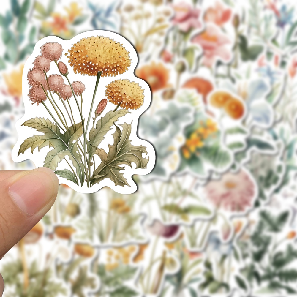 Ilustrações de Plantas em Estilo Aquarela Requintados para Celular e iPad, 50pcs Adesivos À Prova d'Água