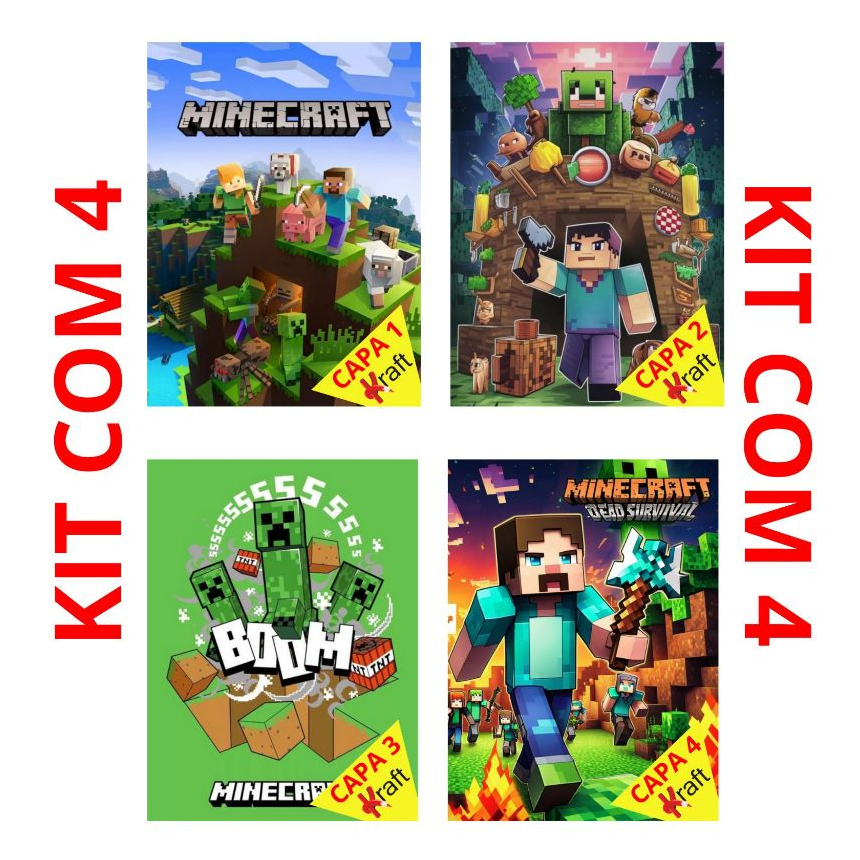 Caderno Brochurão Encapado Minecraft Capa Dura 80 Fls KIT C/4