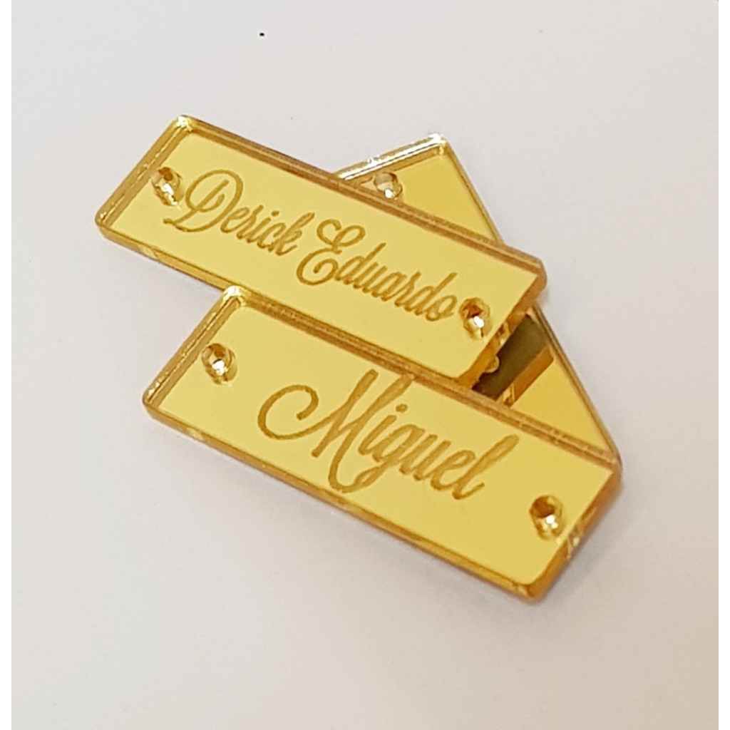 20 Medalhas tag retangular em acrílico espelhado - Escrita Personalizada Sem Desenho e diversos tamanhos