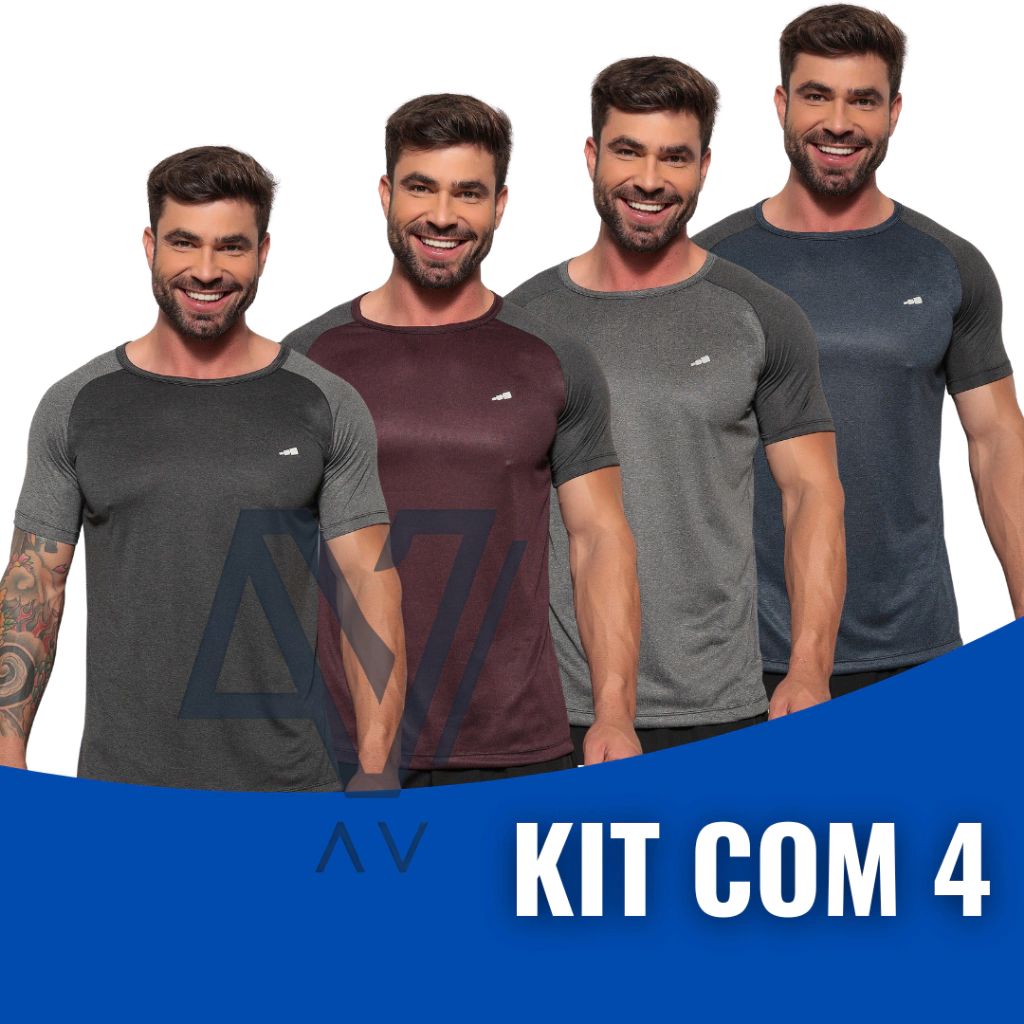 Kit 4 Camisetas Dry Fit Manga Curta Camisa Raglan Masculina Gola Redonda Drifit Slim